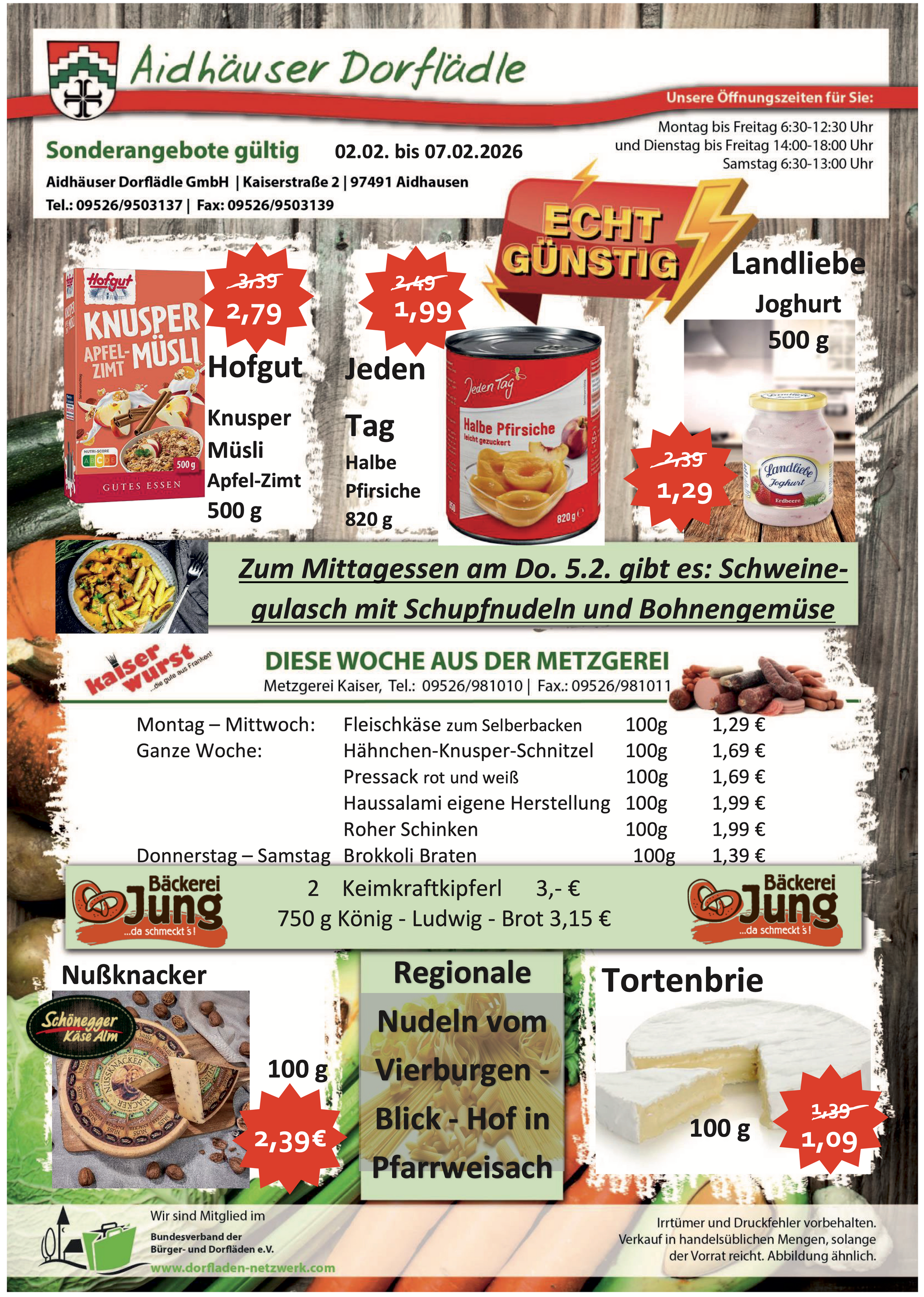 Unsere Filiale in Aidhausen ist stolz darauf, Ihnen hochwertige Fleisch- und Wurstwaren anzubieten, die von Handwerkstradition und höchster Qualität geprägt sind. Besuchen Sie uns zu den folgenden Öffnungszeiten: